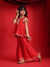 Vibrant red printed top paired with a flared sharara, featuring elegant lace detailing and stylish tie-up straps. Perfect festive wear for weddings, poojas, and celebrations. Soft, breathable, and beautifully designed for little girls.