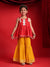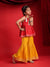 Vibrant red printed top paired with a mustard flared sharara, featuring elegant lace detailing and stylish tie-up straps. Perfect festive wear for weddings, poojas, and celebrations. Soft, breathable, and beautifully designed for little girls.