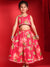 Add vibrant charm to your little one’s festive wardrobe with this beautiful pink floral lehenga choli set. Designed with a soft sleeveless choli and a flared tiered skirt featuring bold floral prints, this outfit is perfect for weddings, celebrations, and festive events. Crafted from breathable, lightweight fabric for all-day comfort, this ethnic set offers the perfect blend of style and comfort.