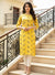 Saka Designs Rayon Printed 3/4 Sleeves Straight Kurti Yellow (Kurti-21
