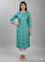 Saka Designs Rayon Printed 3/4 Sleeves Straight Kurti - Teal Blue