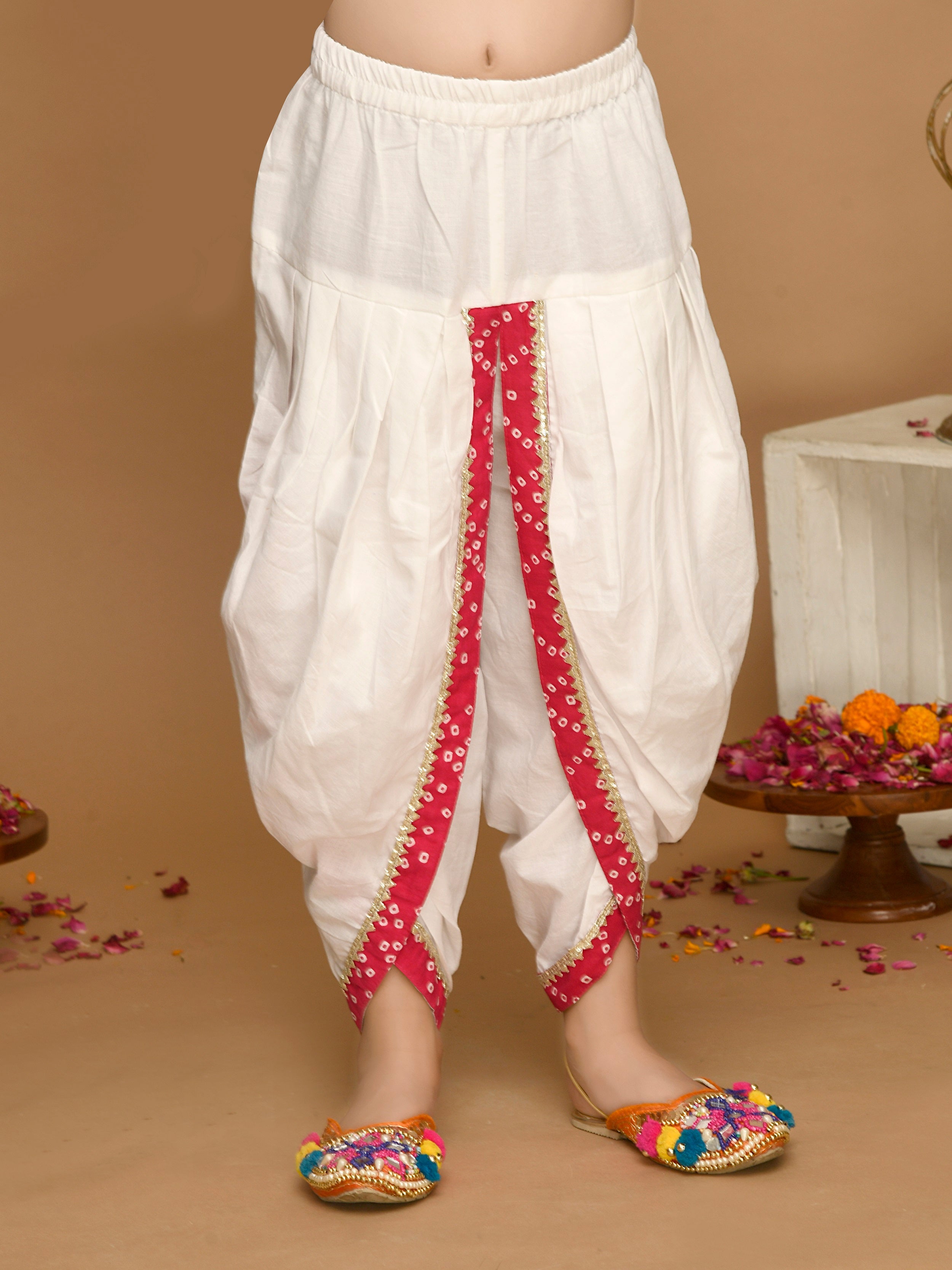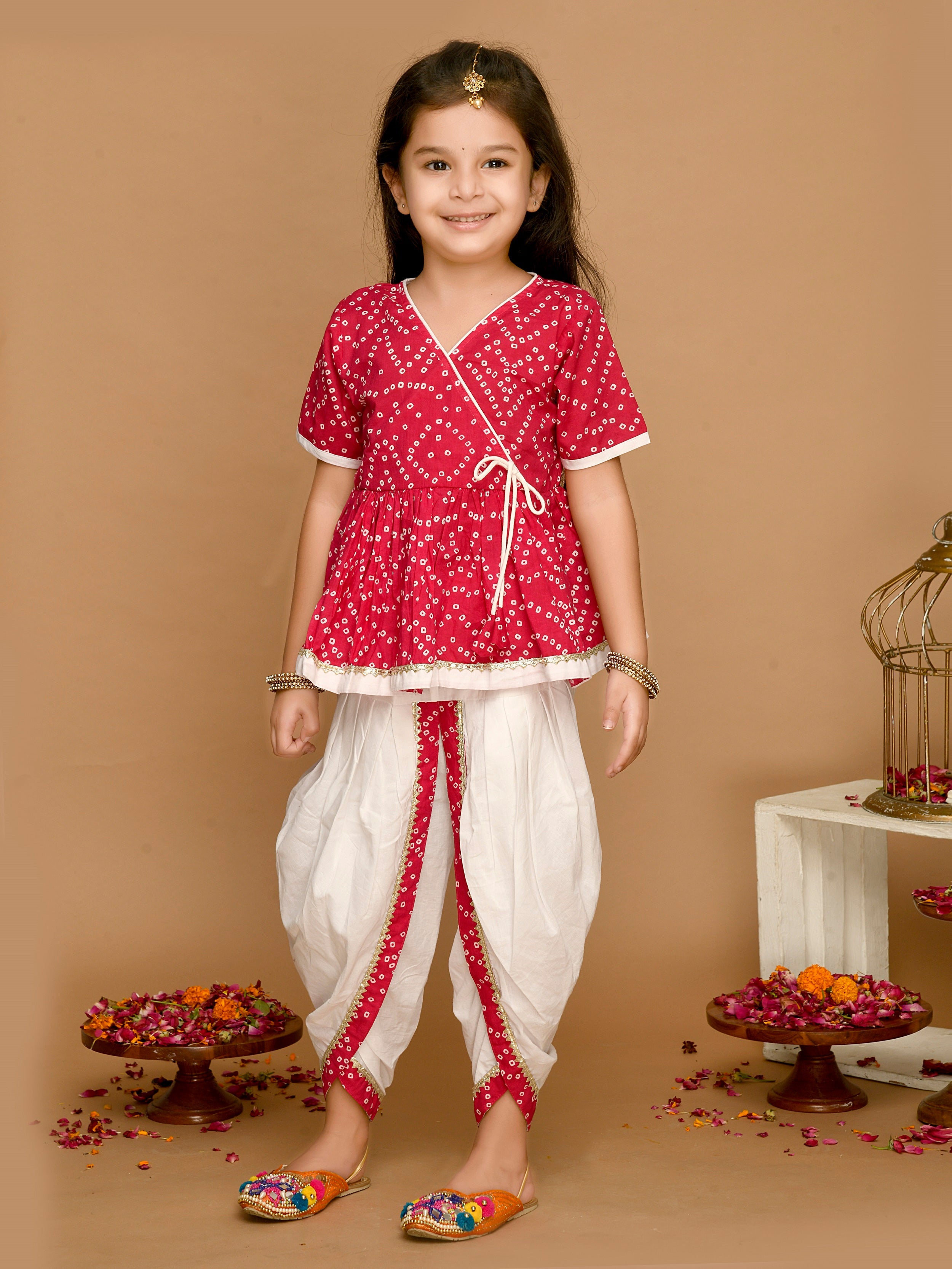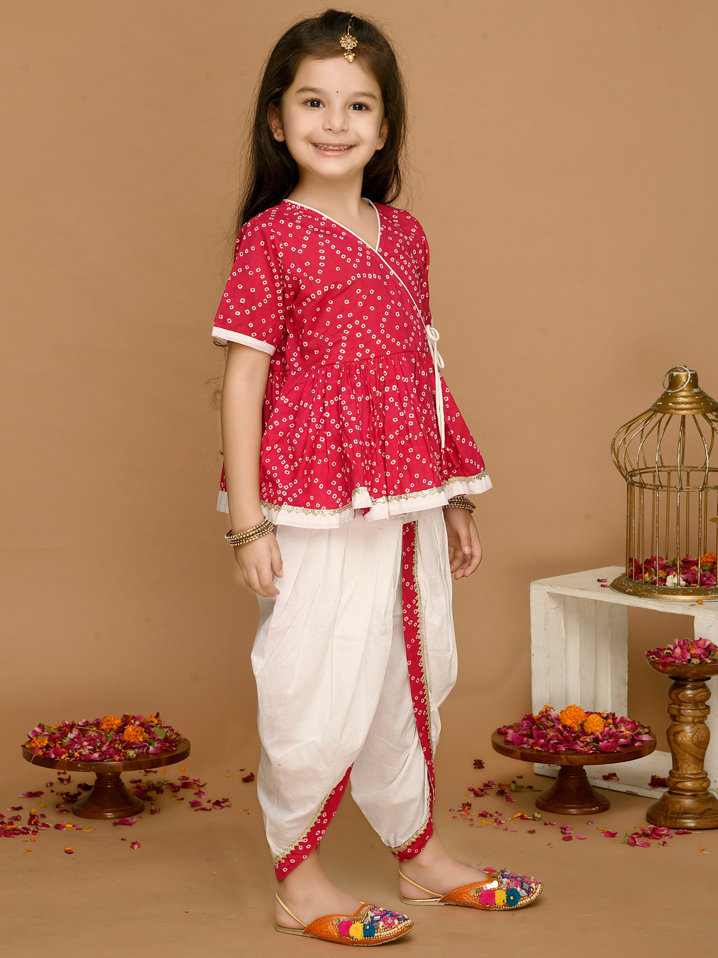 Saka Designs Bandhani Magenta & White Cotton Printed Dhoti Peplum For Girls