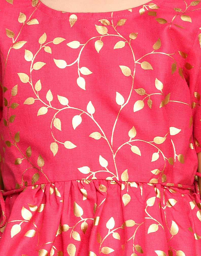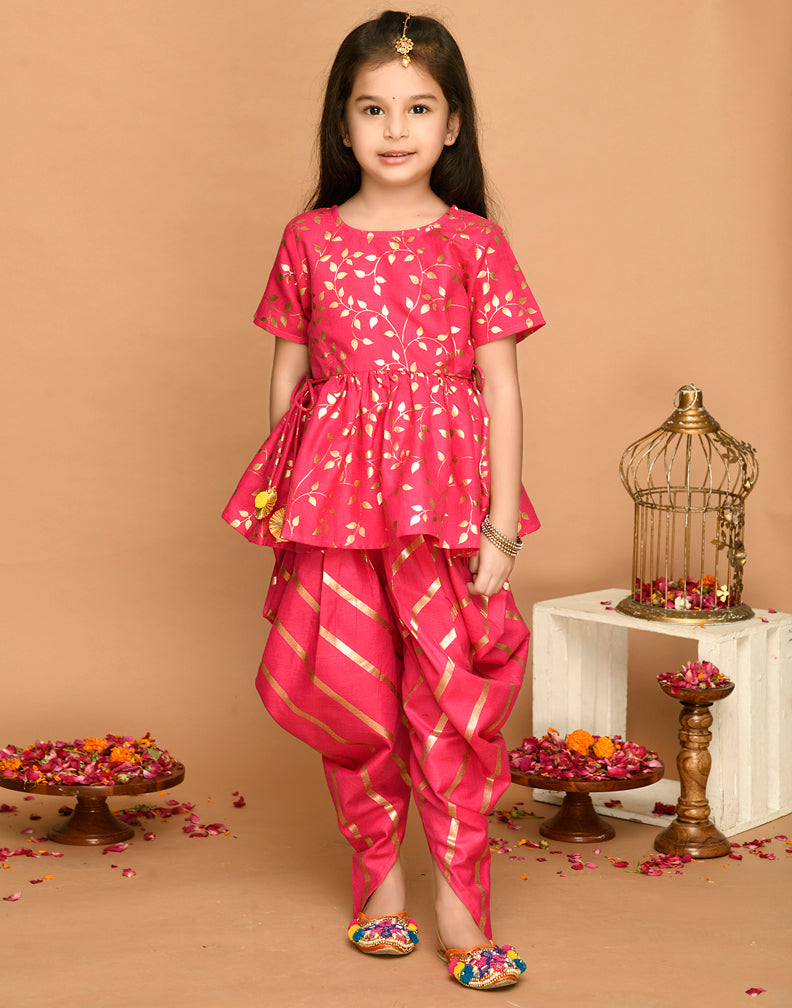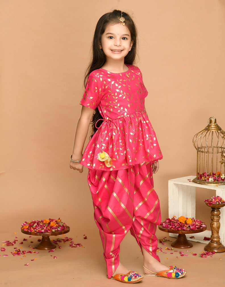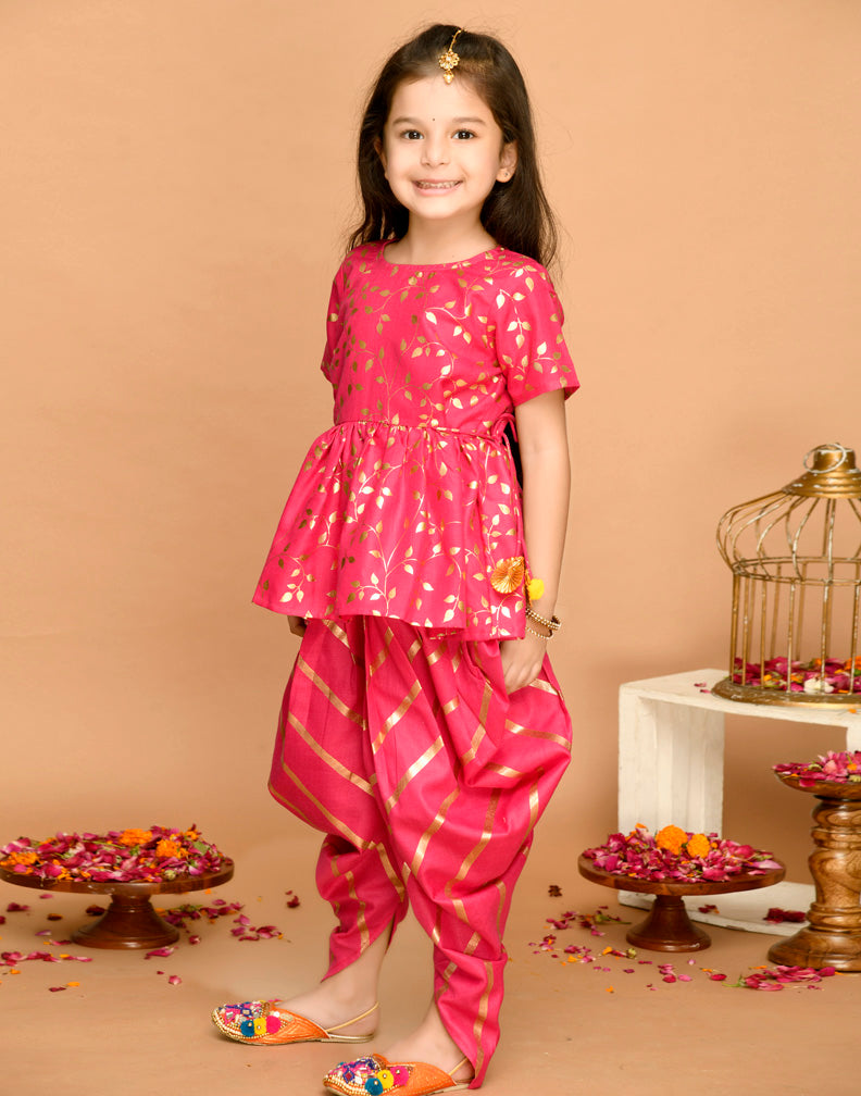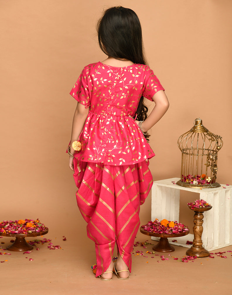 Saka Designs Fuchsia With Gold Print Dhoti Jhabala