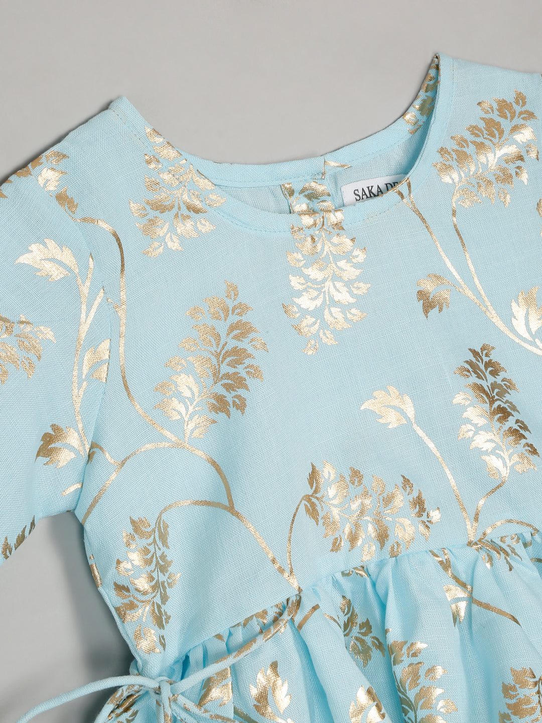 Saka Designs Girls' Cotton Blend Foil Printed Jhabla with Dhoti Ensemble