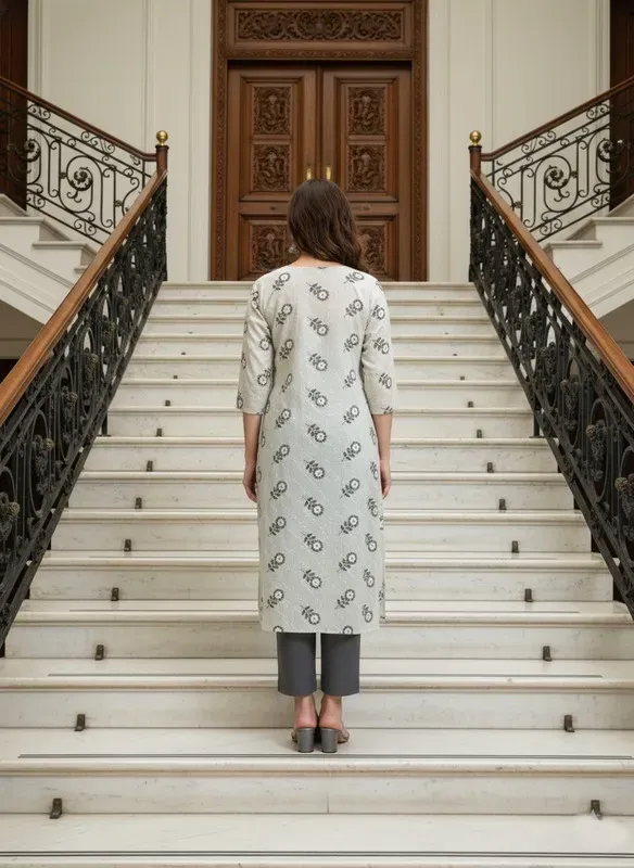 Printed 3/4 Sleeves Straight Kurti White (Kurti-26)
