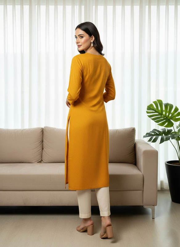 Printed 3/4 Sleeves Straight Kurti Orange (Kurti-28)